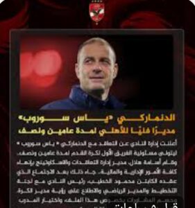 اعلن النادى الاهلى منذ قليل بيانا اكد من خلاله تعاقده مع المدرب الدانماركى ياس سوروب ليتولى مهمة الفريق الاول لكرة القدم بعقد يمتد حتى نهاية موسم2028 وقد تم وضع شرط جزائى بقيمة ثلاثة اشهر فى حالة فسخ العقد من جانب اى من الطرفين وتم الاتفاق على تقاضى “سوروب” 250الف دولتر شهريا له ولجهازه المعاون المكون من4مدربين آخرين للاحمال البدنيه وتحليل الآداء ومدرب لحراس المرمى والمساعد الرئيسى معه، بالاضافه الى الاتفاق على استمرار عادل مصطفى مدربا مساعدا فى الجهاز..كما تم الاتفاق على حصول المدير الفنى وجهازه المعاون على مكافأه بقيمة شهرين فى حالة فوز الاهلى ببطولة دورى ابطال افريقيا والدورى المحلى، ومكافأه ماليه بقيمة شهر فى حالة الفوز ببطولة كأس مصر او اى بطوله اخرى مثل كأس الرابطه..ومن المنتظر وصول المدرب وجهازه المعاون مساء غد الخميس ويبدأ عمله بعد غد الجمعه