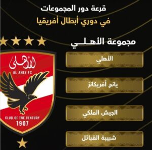 اسفرت قرعة دور المجموعات من دورى ابطال افريقيا عن وقوع الاهلى على رأس المجموعه الثانيه التى تضم كل من الجيش الملكى المغربى وشبيبة القبائل الجزائرى ويانج افريكانز بطا تنزانيا..ومن المقرر ان يستهل الاهلى مشواره فى دور المجموعات باستضافة شبيبة القبائل على ملعب استاد القاهره ثم يخرج لمواجهة الجيش الملكى بالمغرب فى نوفمبر الحالى..وبعد عوده المنافسه بعد بطولة امم افريقيا يستضيف الاهلى يانج افريكانز بالقاهره ،وفى الجوله الرابعه يخرج الى تنزانيا لمواجهة يانج افريكانز على ملعبه ثم يذهب الى الجزائر لمواجهة شبيبة القبائل على ملعبه ،ويختتم الاهلى مشواره فى دور المحموعات بمواجهة الجيش الملكى باستاد القاهره.